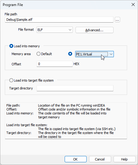 2. Select the file and press Edit.3. Change Memory area to CPU (Load into memory section), which will execute the code, e.g. PE1.Virtual.